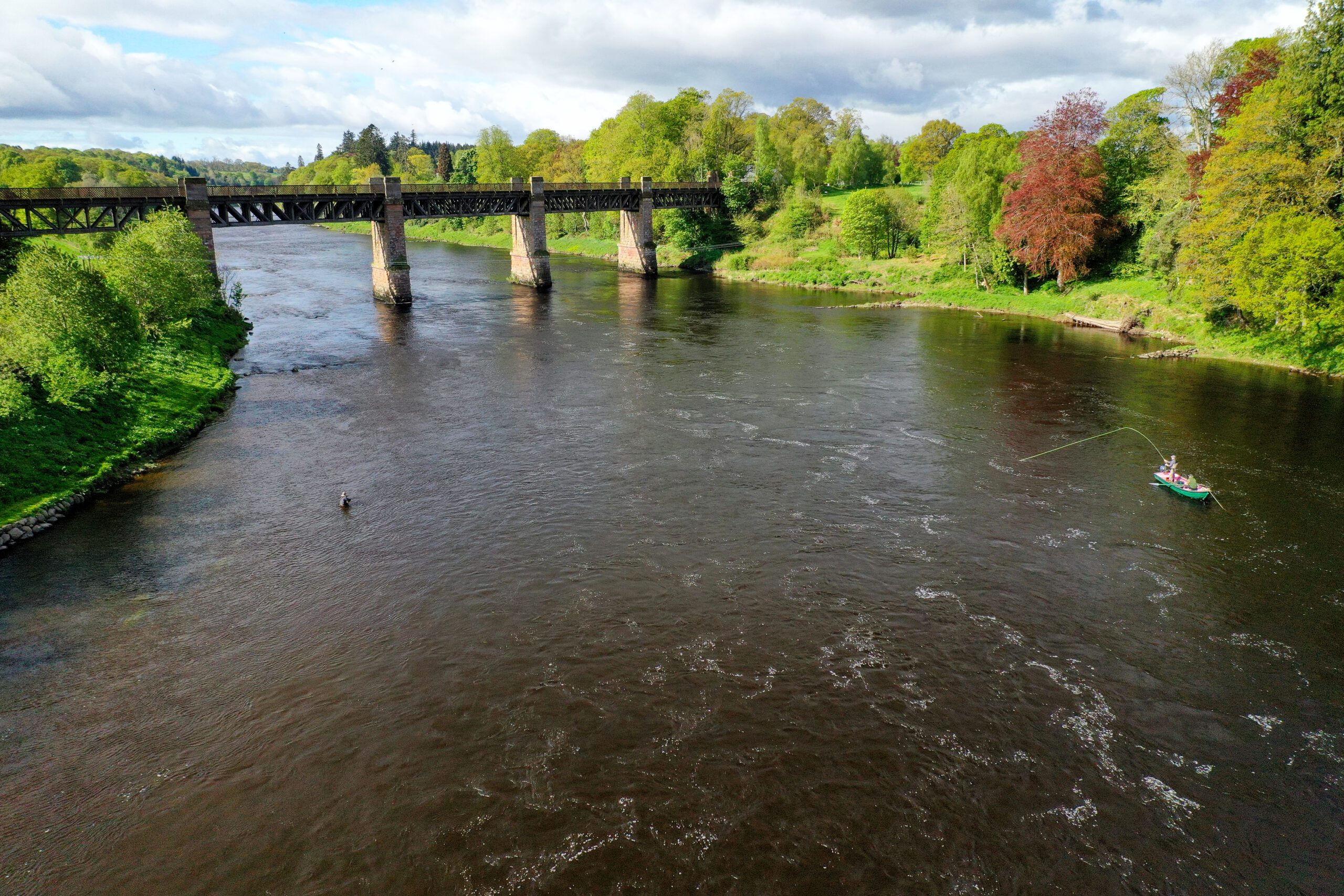 From there for a mile downstream the beat is a succession of fast streams and strong deeper runs. This is the cream of flyfishing water on the Tay and unless the water is really high only fly fishing is permitted on this beat.